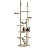 タンスのゲン キャットタワー 230~253cm 支柱3本 突っ張り 爪研ぎ 麻紐 ハンモック ファブリック ベージュ 40900003 03 【60845】